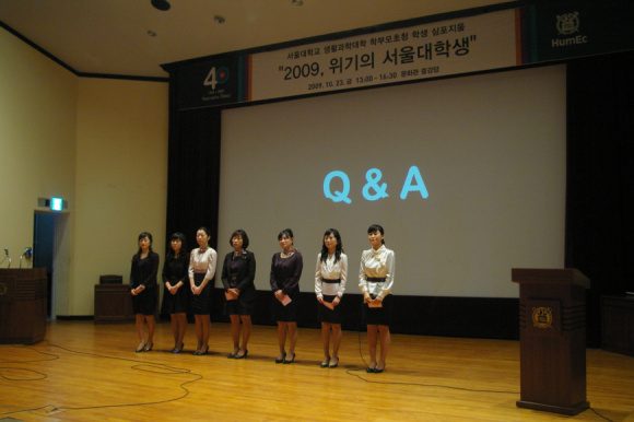 학부 심포지엄팀은 사회이슈를 톡톡 튀는 연구주제로 발전시키고, 직접 설문조사 및 심층면접을 실시하여 분석한 수준 높은 연구결과를 발표하고 있습니다. 재치있는 심포지엄 발표 역시 자랑거리입니다. 심포지엄에 참여했던 학생들은 학부생활에서 가장 의미있는 활동으로 심포지엄을 꼽는 경우가 많습니다.